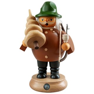 Dieser mittelgroße, rundliche Baumfäller aus dem Hause Müller Kleinkunst in Seiffen räuchert gemütlich seine Pfeife. Die Räuchermänner von Müller Kleinkunst bringen Grüße aus dem Erzgebirge auch in Ihre Wohnstube.